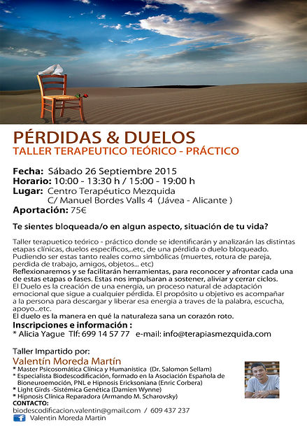 TALLER TERAPEUTICO TEÓRICO - PRÁCTICO PÉRDIDAS & DUELOS BASE 22. Domingo 04 Octubre 2015 / IBIZA
